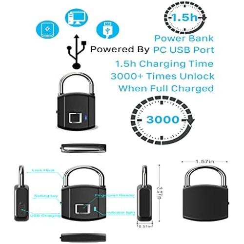 - 4. ? Durable Battery: The Battery Capacity Of Hengzong Sm Fingerprint Lock Is 200mA. After Fully Charged, It Can Stand By For One Year Or Switch And Lock 2500 Times. When The Battery Is Low, The Red Light And Beep Will Remind You To Charge, But It Can Still Be Unlocked 50 Times, And You Have Enough Time To Charge