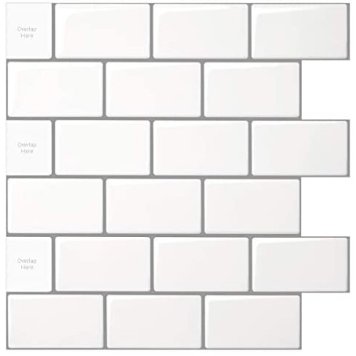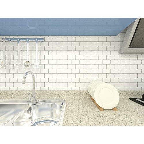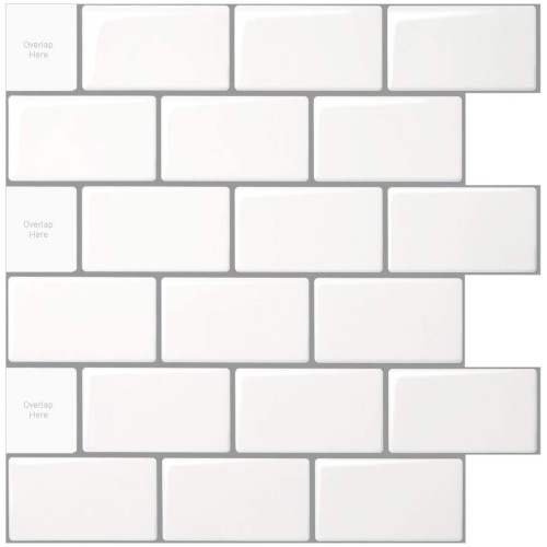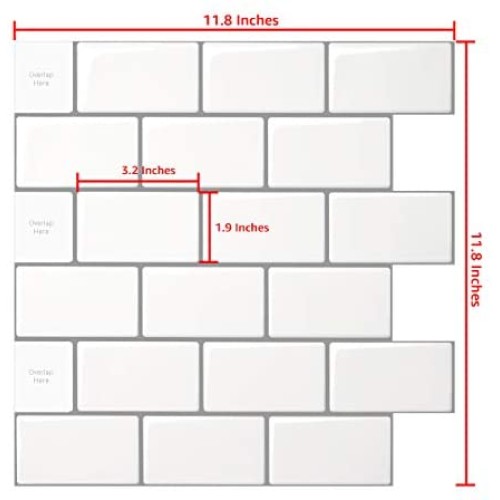 10-Sheet Peel and Stick Tile for Kitchen Backsplash, 12x12 inches White Subway Tile with Grey Grout