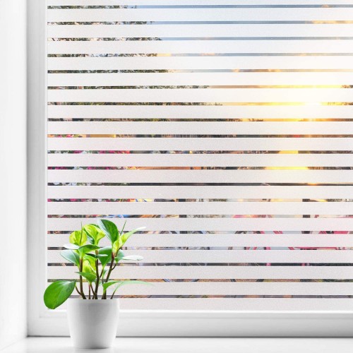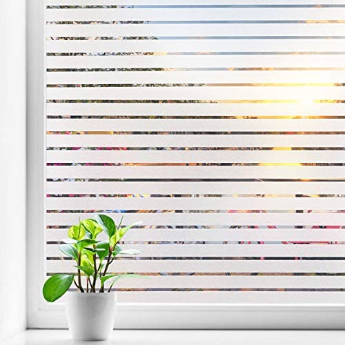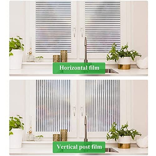 Window Film Privacy Blinds Glass Film Decorative Non-Adhesive Frosted Static Cling Sun Blocking Heat Control Home Office Stickers for Bathroom Door Coverings, Stripe Patterns 17.7 x 78.7 Inch